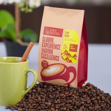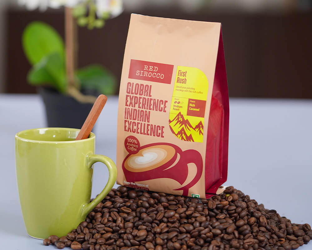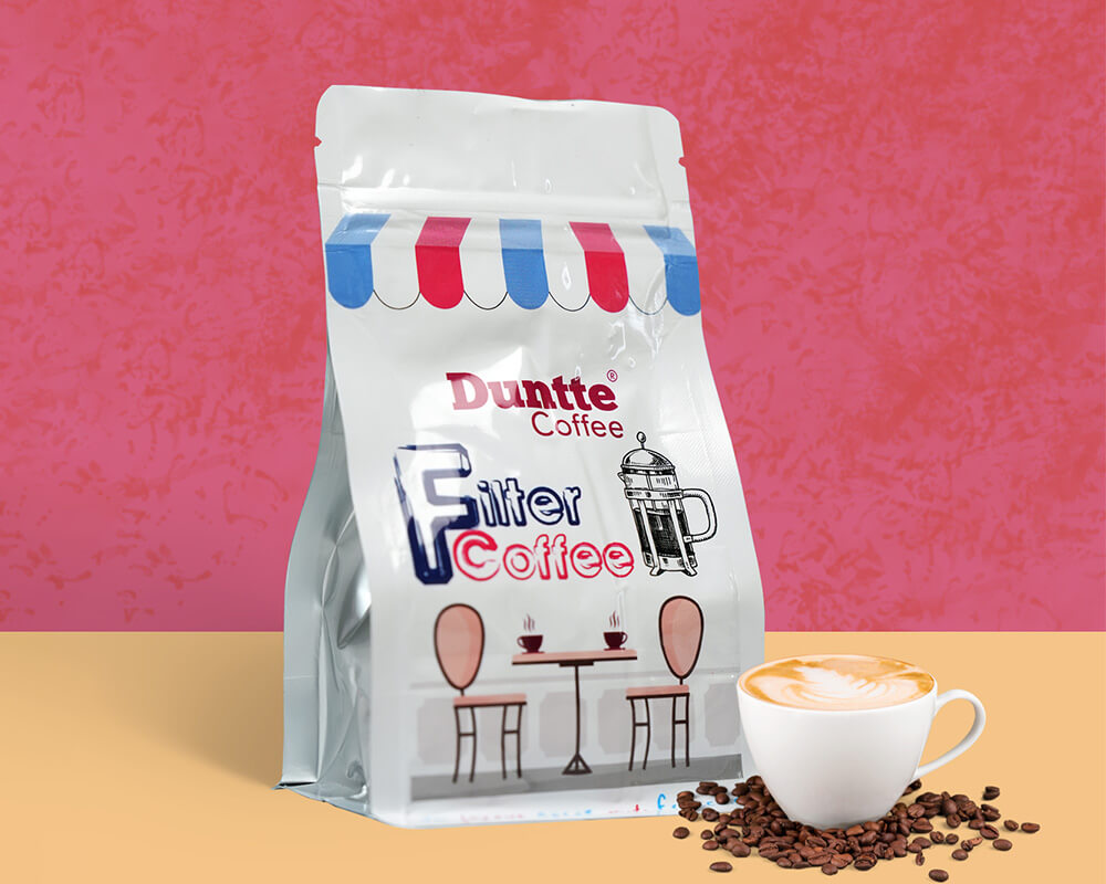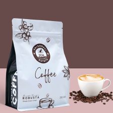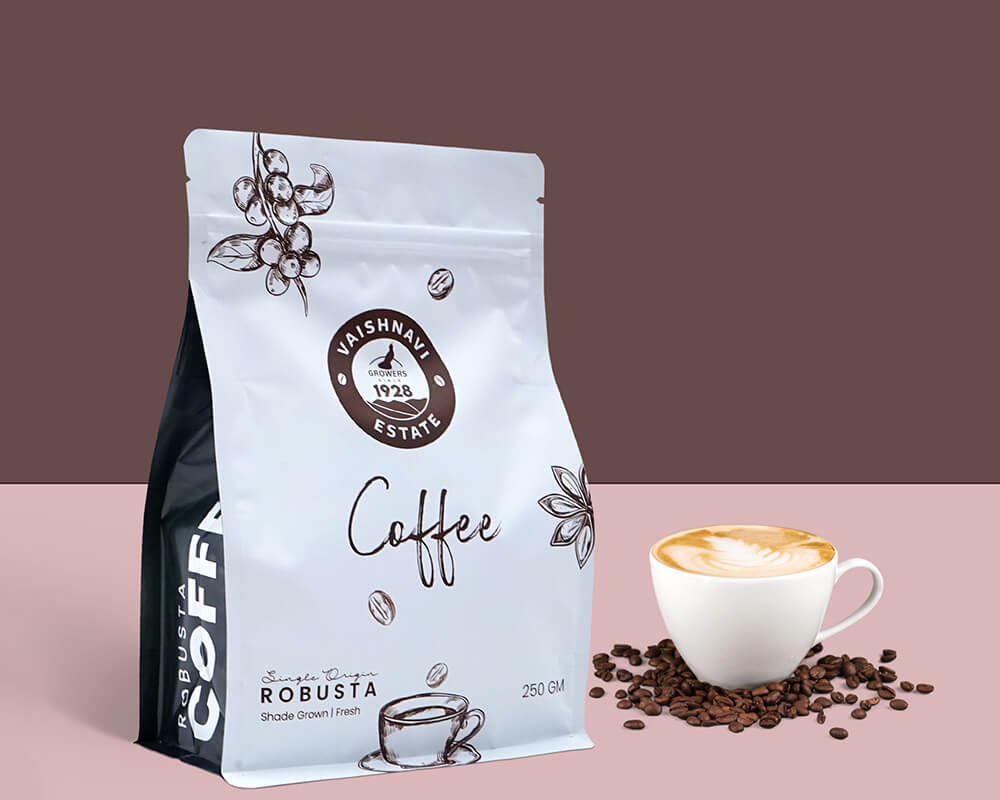 Material de empacado: el café es empacado en materiales que pueden ir desde bolsas de papel hasta pesado aluminio laminado y latas. El tipo de empaque también juega un rol importante en términos de mercadeo. En términos de vida del café, el empaque debe ser sellado fácilmente (usualmente al calor) y resistente a la humedad.